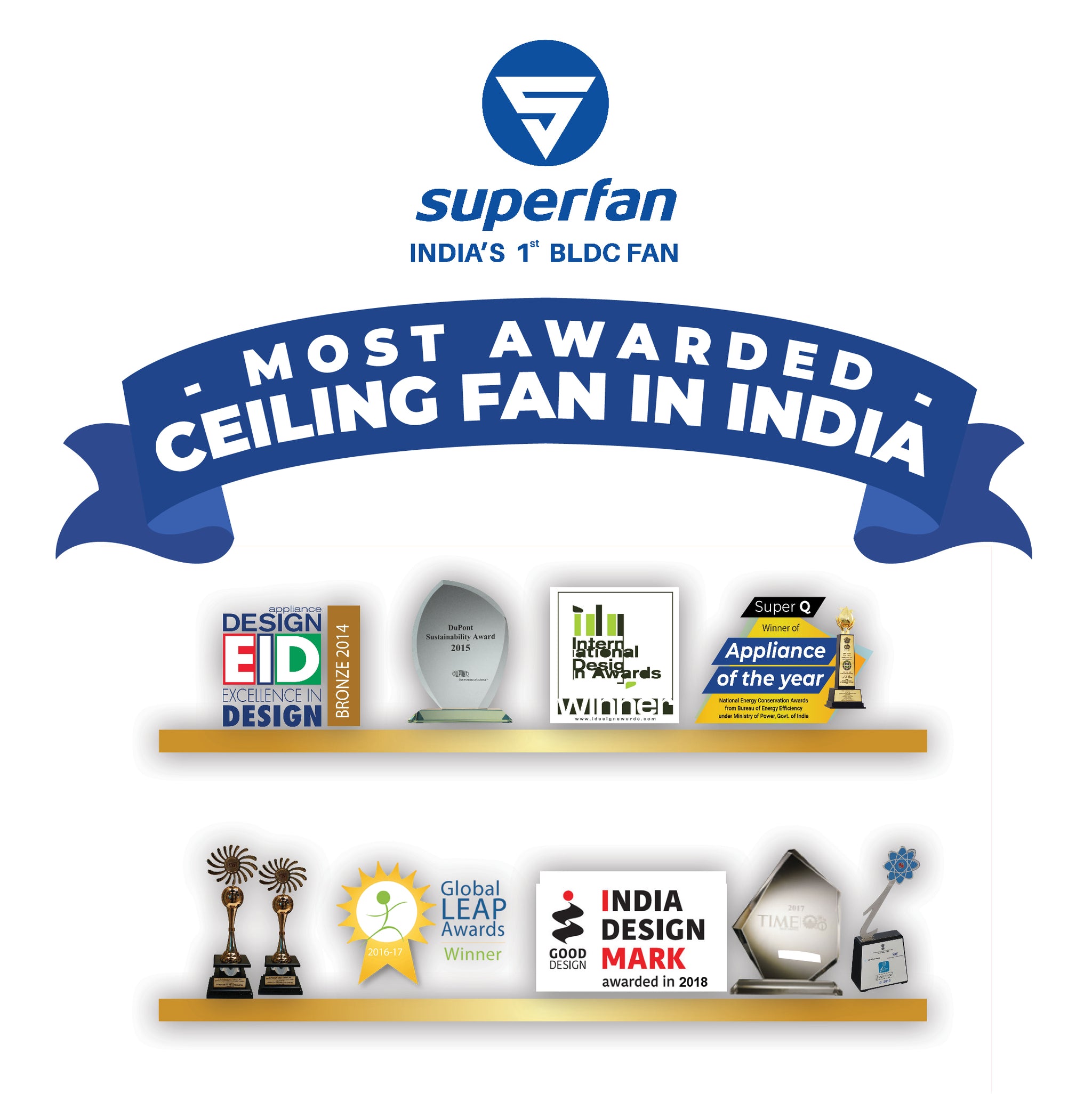 It won the Appliance of the Year award in 2021 from the Ministry of Power, Government of India, for being the most efficient ceiling fan in India. At the highest speed setting, Superfan SuperQ consumes 1 unit of electricity in 40 hours, while a normal fan consumes 1 unit of electricity in 13 hours.