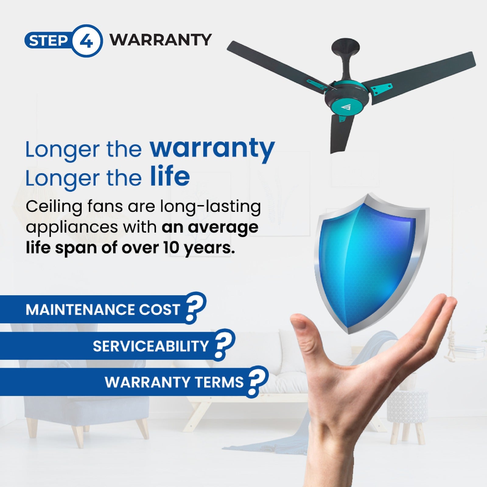 Maintenance Cost: A fan is a long-lasting appliance, so one with a longer warranty and serviceability offers better long-term value.