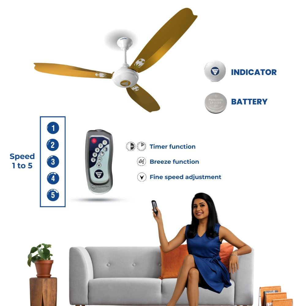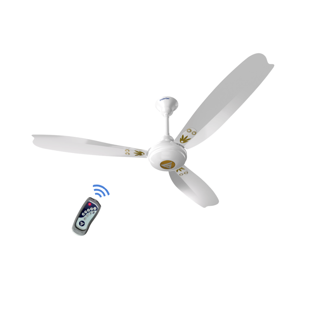 Super A1 is our flagship super energy efficient ceiling fan that has complete features. The power consumption of 35 W easily surpassed the 5-star rating by the Bureau of Energy Efficiency (BEE) while delivering the same or better air delivery than regular fans. This is our best ceiling fans for a quieter operation that comes with a remote.