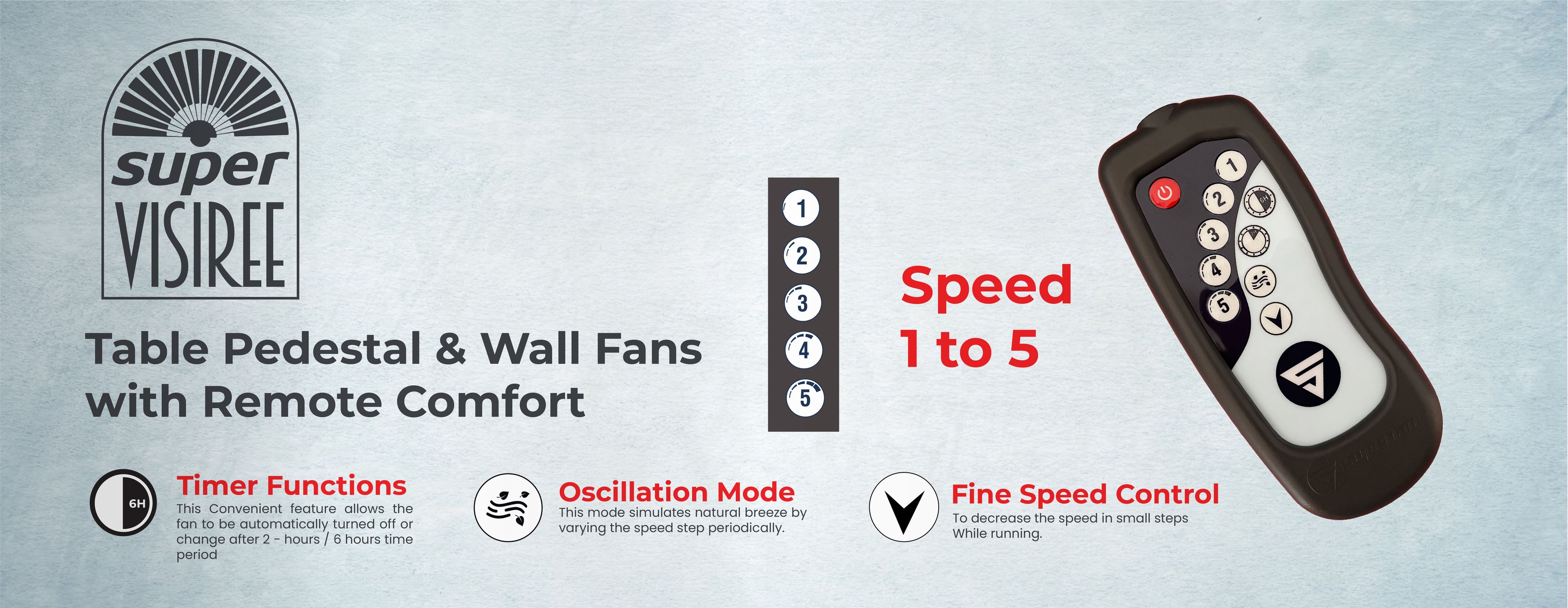 Drop-safe Remote:Specially designed to consume less energy and be argonomically handy. It has special features timer function, natural breeze mode and fine speed control.